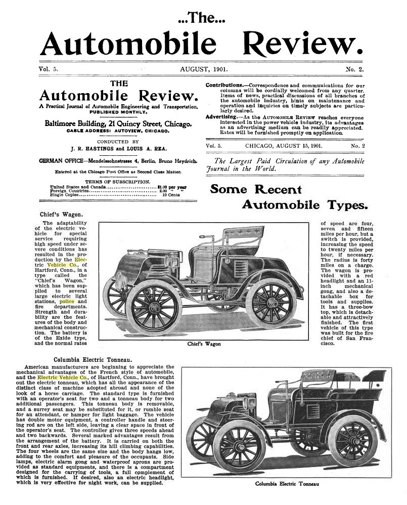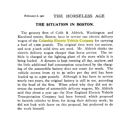 illustrated catalogues from 1900 of Columbia Electric Vehicles